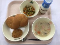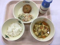 ごはん 牛乳 ごじる めひかりフライ こまつなのおかかあえ がまごおりみかんゼリー
