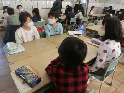 日々の生活の中で悩んでいることを話題にしてグループで話し合いました。今日のめあては、「はなしをつなげられるようになろう」です。グループのみんなの話をしっかり聞き、話をつなげました。