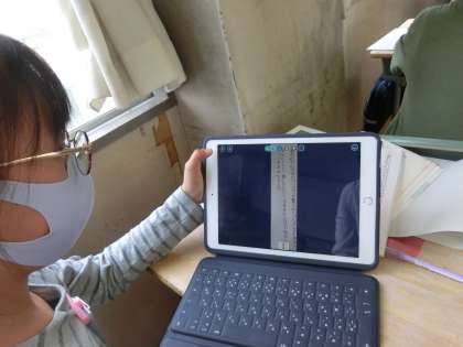 授業の振り返りをノートに書きました。書いた振り返りをタブレットを使って、写真にとり、ロイロノートで提出しました。