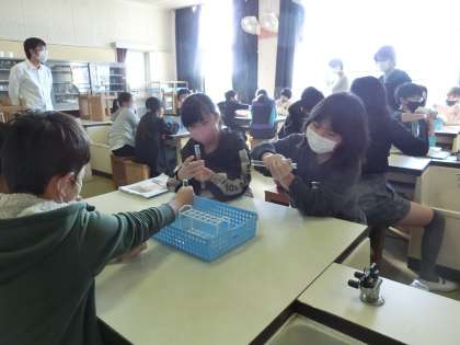 試験管に石けん水をつけてにぎると・・・その変化から気づいたことや疑問に思ったことをグループや全体で話し合いました。