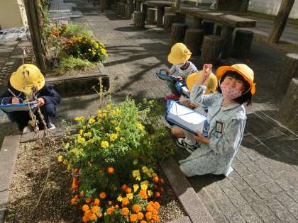 学校の花や生き物など、「しらせたいもの」を決め、絵でかいたり、説明を考えたりしました。