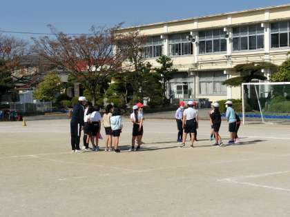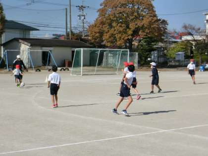 チームで声をかけ合いながらゴールを目指します。なかなか思い通りにいきませんが、楽しく体を動かしています。