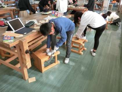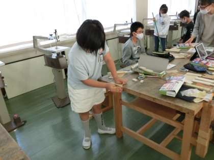 安全にのこぎりを使うことができるように、集中して取り組みます。切り口はていねいにやすりがけしています。