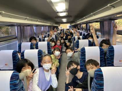 野外学習 バスの中