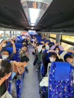 バスの中では、感染対策をして、バスレクを楽しんでいます。