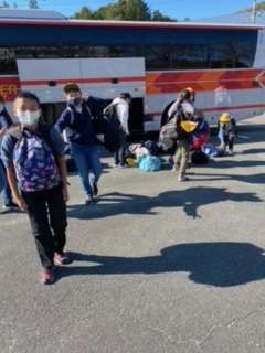 阿南少年自然の家に到着しました。検温をしてバスを降ります。