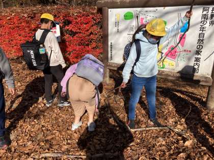 炊事場の広場にはたくさんの落ち葉があります 色も形もさまざま… その中から思い出のお土産になる一枚を探します 道中でも見つかるかも…