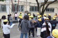 6年生に長なわを回してもらって、跳んでいるグループもありました。