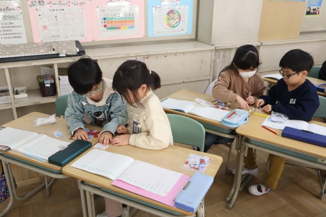 ガムの値段は28円です。さあ、どんなお金の支払い方があるかな。1円、5円、10円を使って、いろいろな支払い方を考えました。