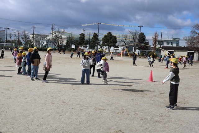 朝は少し雪がちらつきましたが、青空のものとで仲よく元気に遊ぶことができました。5年生に優しくリードされて、2年生も上手におおなわを跳んでいました。