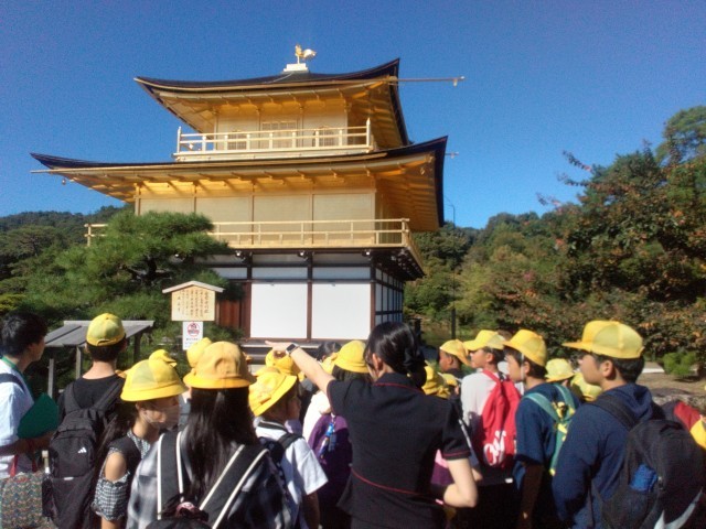 金閣寺は朝から大混雑です。ゆっくり見学とはいきませんでしたが、その美しさにみんな...