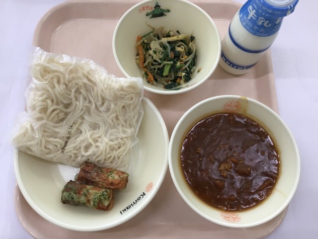 【今日の献立】ソフトめん 牛乳肉みそかけちくわのいそべ揚げ千草あえ