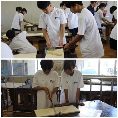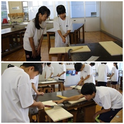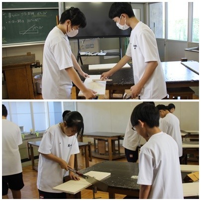 本日の作業は木材のカット。初めてのこぎりを使います。