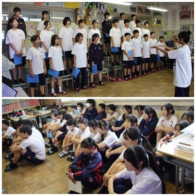1年生と3年生が、お互いの合唱曲を披露しました。