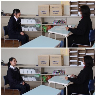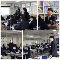 ALTの先生に北里中学校について英語でスピーキング。