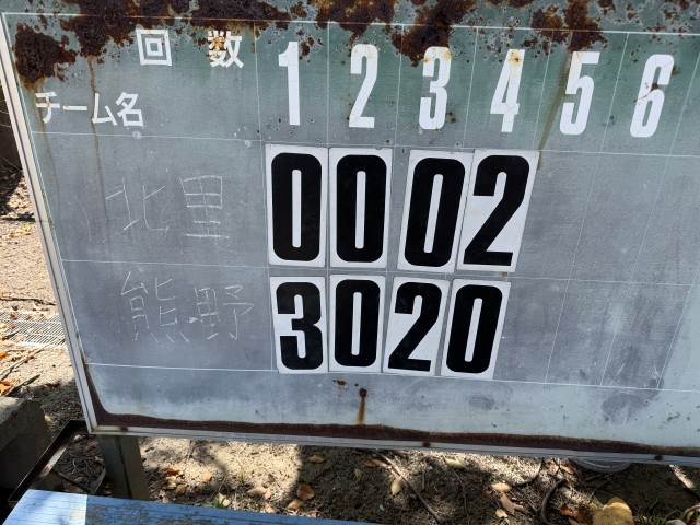 今日の試合では、北中の打撃に良い兆しが見えました。特に、1試合目の1回裏には2アウトから3番の右中間を破るランニングHR、本校のグランドルールに基づくものの続く4番がレフトフェンスを越えるHR。見事な2者連続ホームランで、熊野中に喰らいつくきっかけになりました。他にも、1番打者の長打を含む複数安打や、5番打者のタイムリーヒット2本、そしてここ最近調子を落としていた選手にも安打が出ました。