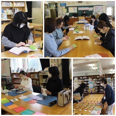 図書ボランティアさんは、毎月1回、購入した新刊図書の整備や、図書室の飾りつけなどをしています。