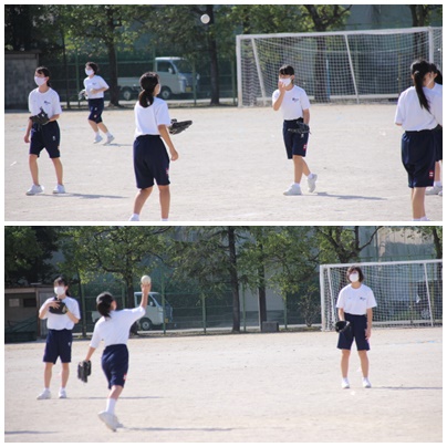 ソフトボールになりました。キャッチボール、転がったボールをとる練習など、基本的な動きを学びました。