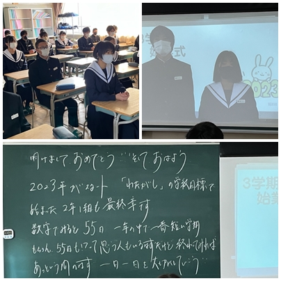 久々の登校でしたがいつもと変わらぬ、元気でていねいな「おはようございます」が飛び交いました。中には新年のあいさつまで添えてくれる人もいました。相手や周りの人を優しい気持ち、温かい気持ちにさせてくれる学年の良さを改めて感じました。