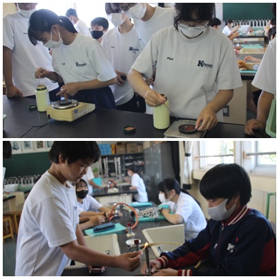銅をステンレス皿にのせて加熱し、質量の変化を調べました。