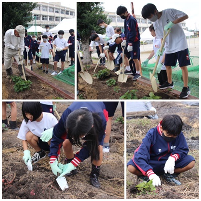 6,7,8組では、初夏に植えたさつまいもの収穫を行いました。