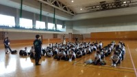 美浜総合体育館に到着しました。入村式を終え、体験活動に出発します。