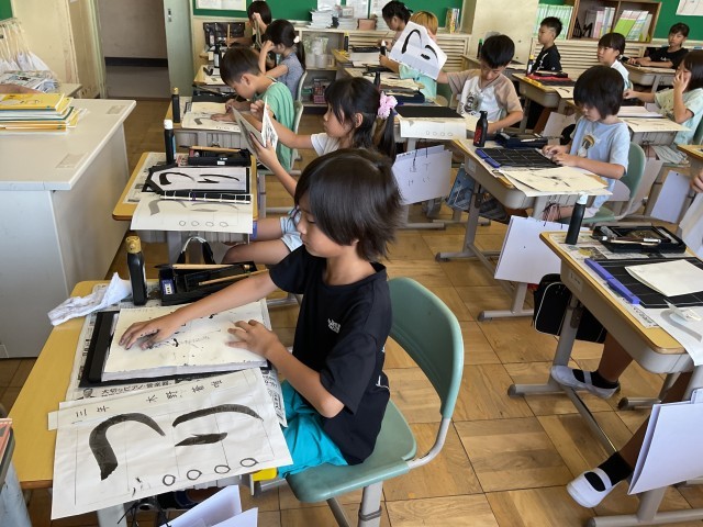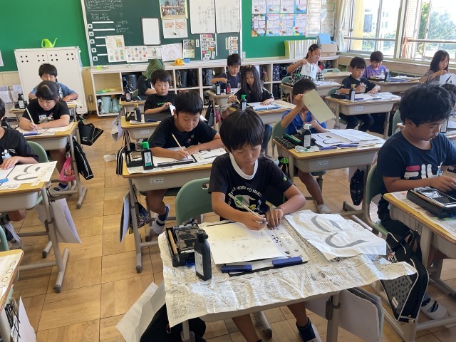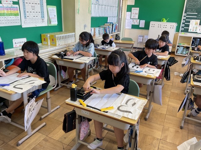 書写競技会で、「つり」を書きました。ひらがなの筆の動かし方に気をつけて、お手本をよく見ながら練習をしました。清書の時間も、集中して取り組む姿が見られました。