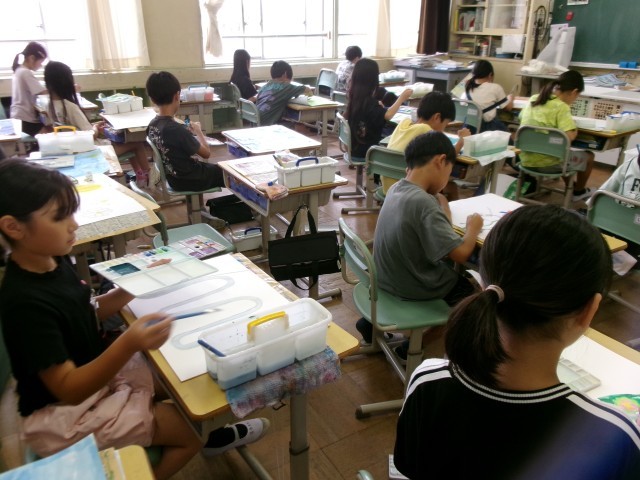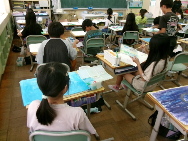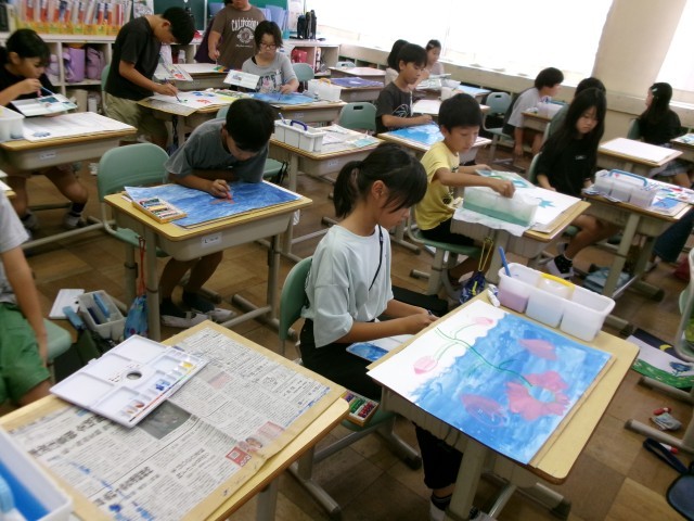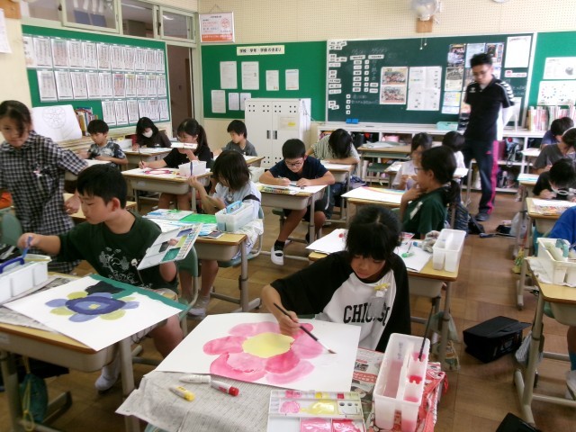 ひとりひとりが思い描く、さまざまなテーマの花が完成しました。絵の具やクレヨン、ペンなどを使って自分のイメージを表現しました。