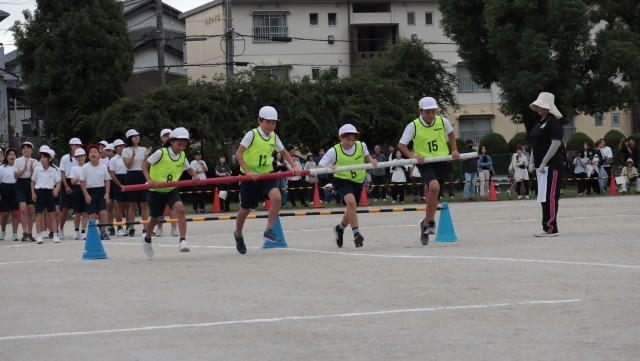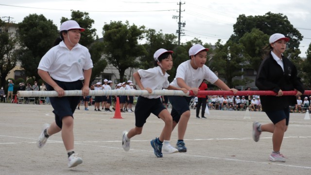 5・6年生で協力した台風の目。短い練習期間の中で、チームで作戦を立て、勝利に向かいました。互いに励まし合う姿から、ともに努力した仲間との強いつながりを感じました。高学年として、様々な場面で学校のヒーローとなってほしいです。