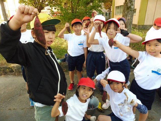 生活科で育てたさつまいもの収穫をしました。少し小ぶりですが、全員1個以上持ち帰ることができました。