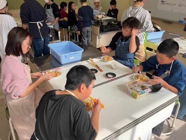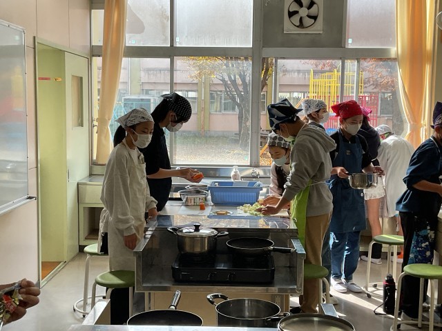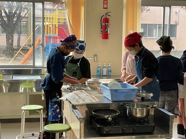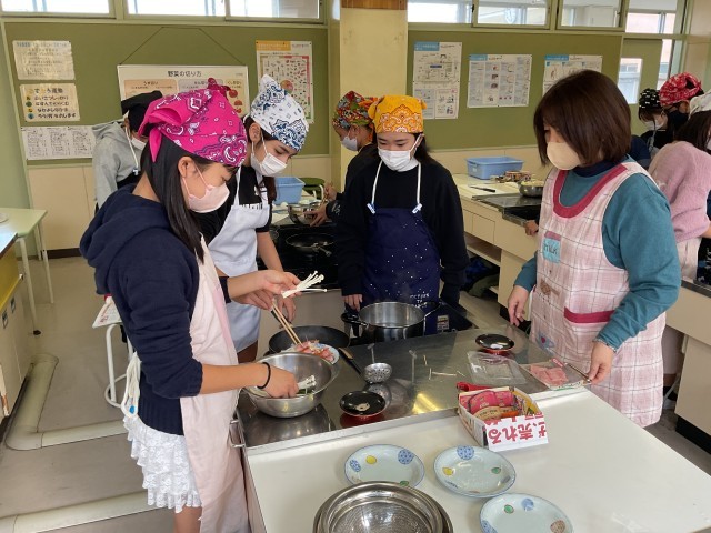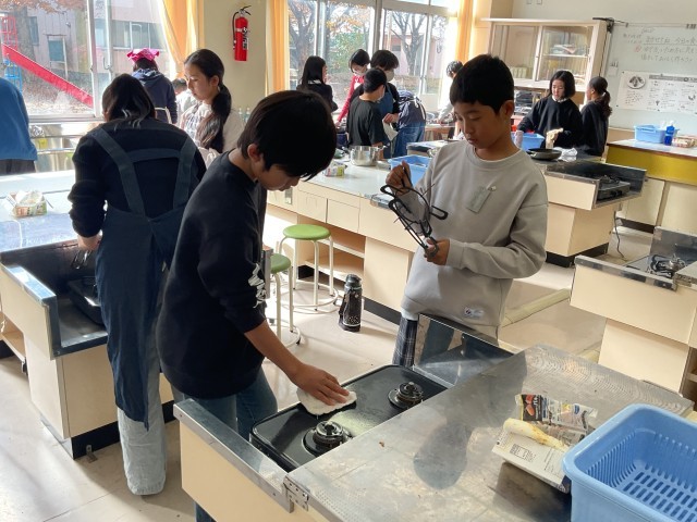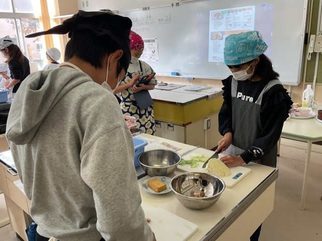 家庭科の授業で調理実習をしました。仲間と協力しながら、グループで決めた料理を作りました。さらに、料理を作る上で、環境へも配慮しました。自分たちで作った料理は絶品でした。