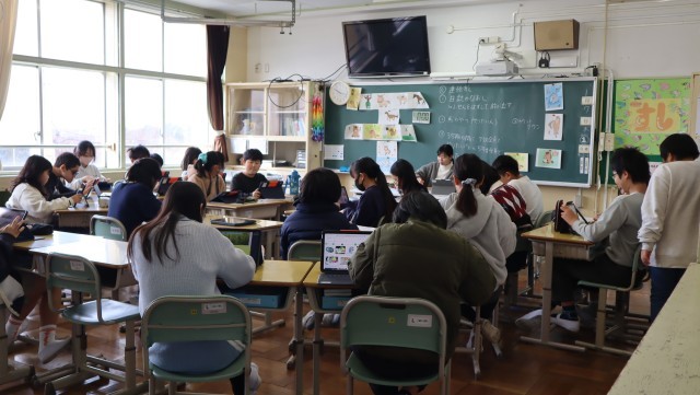 始業式後の学活では、各学級で冬休みの話や提出物の提出・掲示、新年の目標決めなど様々な活動をしていました。