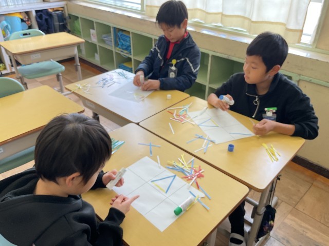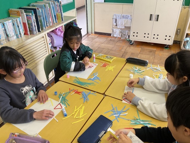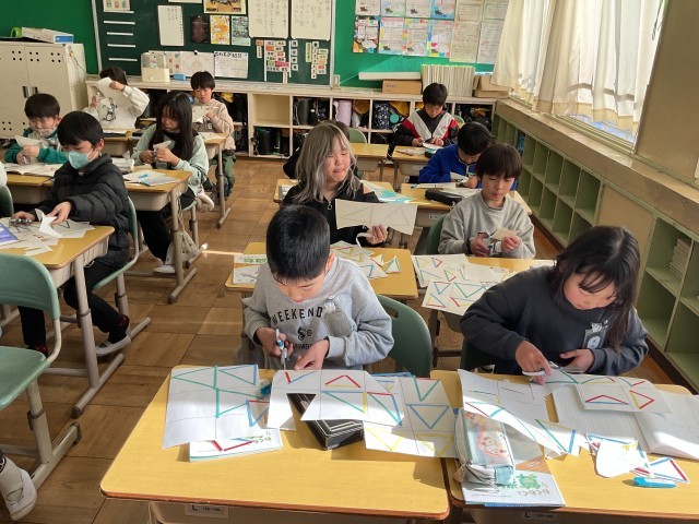 3年 三角形 公開日 2026/01/15 更新日 2026/01/09 3年生の部屋 算数の三角形の勉強が始まりました。色のついた紙を使って、三角形を作り、仲間分けをしました。正三角形や二等辺三角形について知ることができました。 授業風景