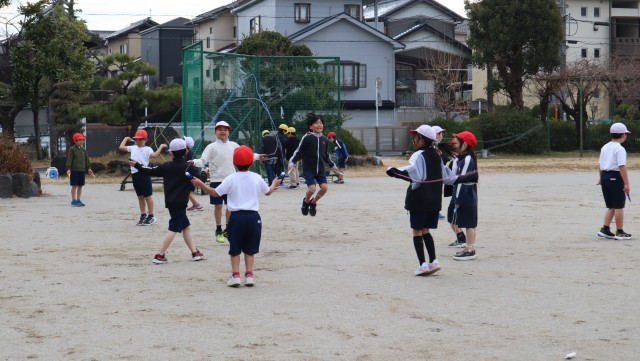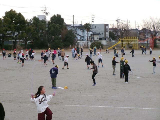 20日まではペア学級で短なわ、21日からは学級で8の字とびを行います。