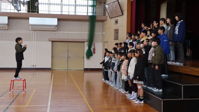 1組は「マイバラード」2組は「ビクトリー」、そして5年生全員で「カントリーロード」。