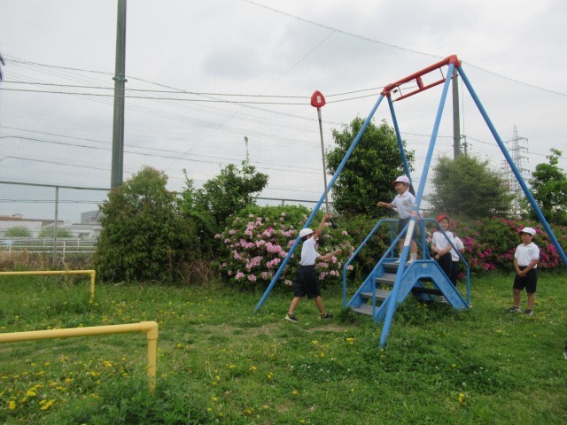 3年 合同体育 公開日 2026/04/20 更新日 2026/04/17 3年生の部屋 3年生になり、1組と2組で体育をしました。ターザンロープの学習をしました。順番を守って、安全に使う練習をしました。そのあとは、3年生で増やしおにごっこをしました。広い運動場をたくさん走りました。 授業風景