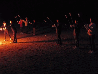キャンプファイヤー4 公開日 2017/05/19 更新日 2017/05/19 5年生の部屋 キャンプファイヤーのフィナーレは、練習を重ねてきたトーチトワリングです。 とってもきれいで素敵な演技でした。「もう一回見たい」「もっと見たい」というように、たくさんの拍手が起こっていました。