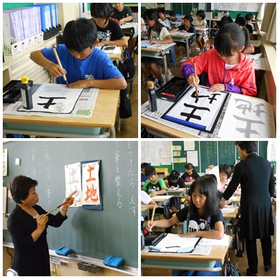 書写指導(5年生) 公開日 2017/05/25 更新日 2017/05/25 5年生の部屋 志村先生による書写指導です。1組2組とも真剣に「土地」という文字にチャレンジしていました。気持ちを集中して、姿勢を正しく、手本をしっかり見て丁寧に!