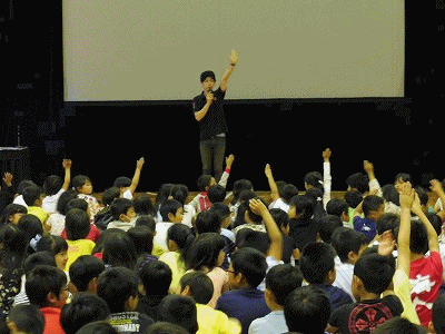 劇団スタジオライフさんによる影絵を鑑賞しました。子どもたちが良く知っている「あらしのよるに」から始まり、第2部は影絵の作り方や体験コーナーといったワークショップ形式で行われました。休憩をはさんで「あらしのよるに」の続き「あるはれたひに」を鑑賞しました。子どもたちは、いろいろな場面で歓声を上げ、大いに盛り上がり楽しみました。