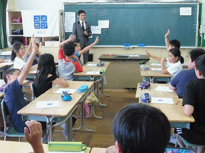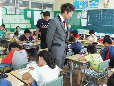 後半は教室に戻って直キック先生の生い立ちなどを聞きました。プロのキックボクサーとして先生がデビューしてからの話に、子どもたちは一喜一憂しながら真剣に話を聞いていました。直キック先生の話に刺激を受けて、自分の将来の夢や今がんばりたいことなどを、みんなの前で堂々と発表した子がたくさんいました。先生からは、夢に向かって全力で頑張ることの大切さを改めて教えていただきました。直キック先生、弥生先生、小木小学校の児童のために貴重な時間をつくっていただき、本当にありがとうございました。