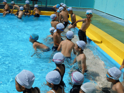 2年生は小プールでの活動になります。しっかり準備運動をして、シャワーを浴びてから、小プールで楽しみました。今日はちょっと水も冷たかったです。