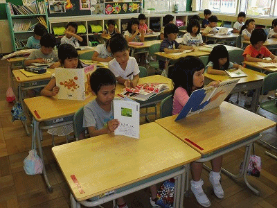 朝の読書 〜1年生〜 公開日 2017/06/13 更新日 2017/06/13 1年生の部屋 1年2組では美音子先生による読み聞かせが行われていました。聞いている子供たちは真剣そのもの。自分で読むのも楽しいけれど、大人に読んでもらうのはもっと大好きのようです。