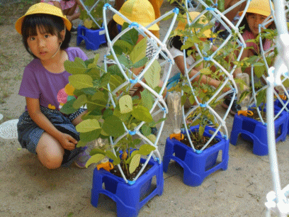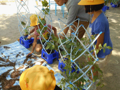 今日は、もっともっと大きな元気な実が育つように、土を加えたり、肥料をあげたりしました。