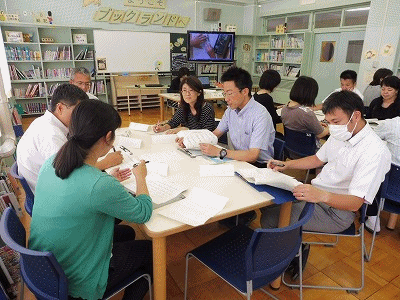 授業後には全職員で研究協議会を行いました。本校が目指す「かかわり聴き合うことを大切にした学び」や2年生のテーマ「友達とのかかわりの中で、自分の考えたことを話そう」にどれほど迫れたかなどについて、話し合いました。千田先生からは「子どもたちが安心して学べる温かな人間関係が築かれている」「友達の発言に対し、体をきちんと向けて聴こうとする姿勢がみられる」「子どもたちに説明をさせるとき、書画カメラ等のIT機器をつかうと、より理解が深まる」などの話をいただきました。