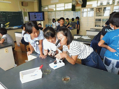 微生物の観察 〜5年生〜 公開日 2017/07/11 更新日 2017/07/11 5年生の部屋 池の水をくんできて微生物の観察をしていました。 ミジンコやツリガネムシなどの微生物を見つけることができました。顕微鏡の扱いにも慣れていたように思います。