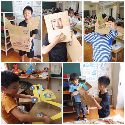 切って つないで 大変身 3年生図工 公開日 2017/07/11 更新日 2017/07/11 3年生の部屋 段ボールを切ったり、つないだりして、思い思いの形を作っていきます。動物、車、 ジュースの自動販売機など、段ボールがいろいろな形に変身していました。