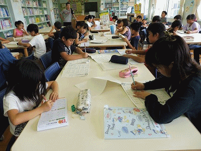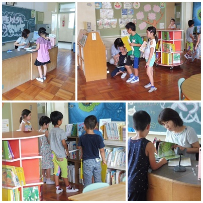 夏休みまであと一週間となりました。夏休みは時間がたっぷりあるので、いつも以上に本がたくさん読めます。ブックランド(高学年図書室)やブックアイランド(低学年図書室)では、夏休みに読む本や読書感想文を書く本を子どもたちが選んでいました。