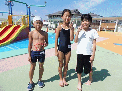絶好の天候の下、南スポーツセンタープールで水泳大会が行われました。小木小からは4年生の加藤君と6年生の河合さんが50m平泳ぎに、4年生の花村さんが50mバタフライに出場しました。河合さんが50m平泳ぎフリーの部で見事3位に入賞しました。加藤君と花村さんは惜しくも入賞できませんでしたが、来年、再来年につながる泳ぎを見せてくれました。
