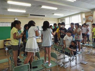 明日が1学期の終業式。授業の方も一区切りがついて、学級でお楽しみ会を開いている学級もありました。「無人島崩壊ゲーム」だとか。じゃんけんの結果に一喜一憂し、とっても楽しそう。一学期のよい思い出の一つになったことと思います。