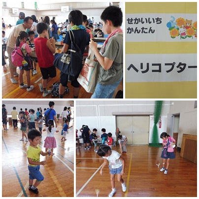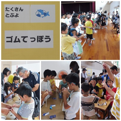 写真下:ゴム鉄砲 意外とよく飛んでいました。的当てにも真剣に取り組んでいました。